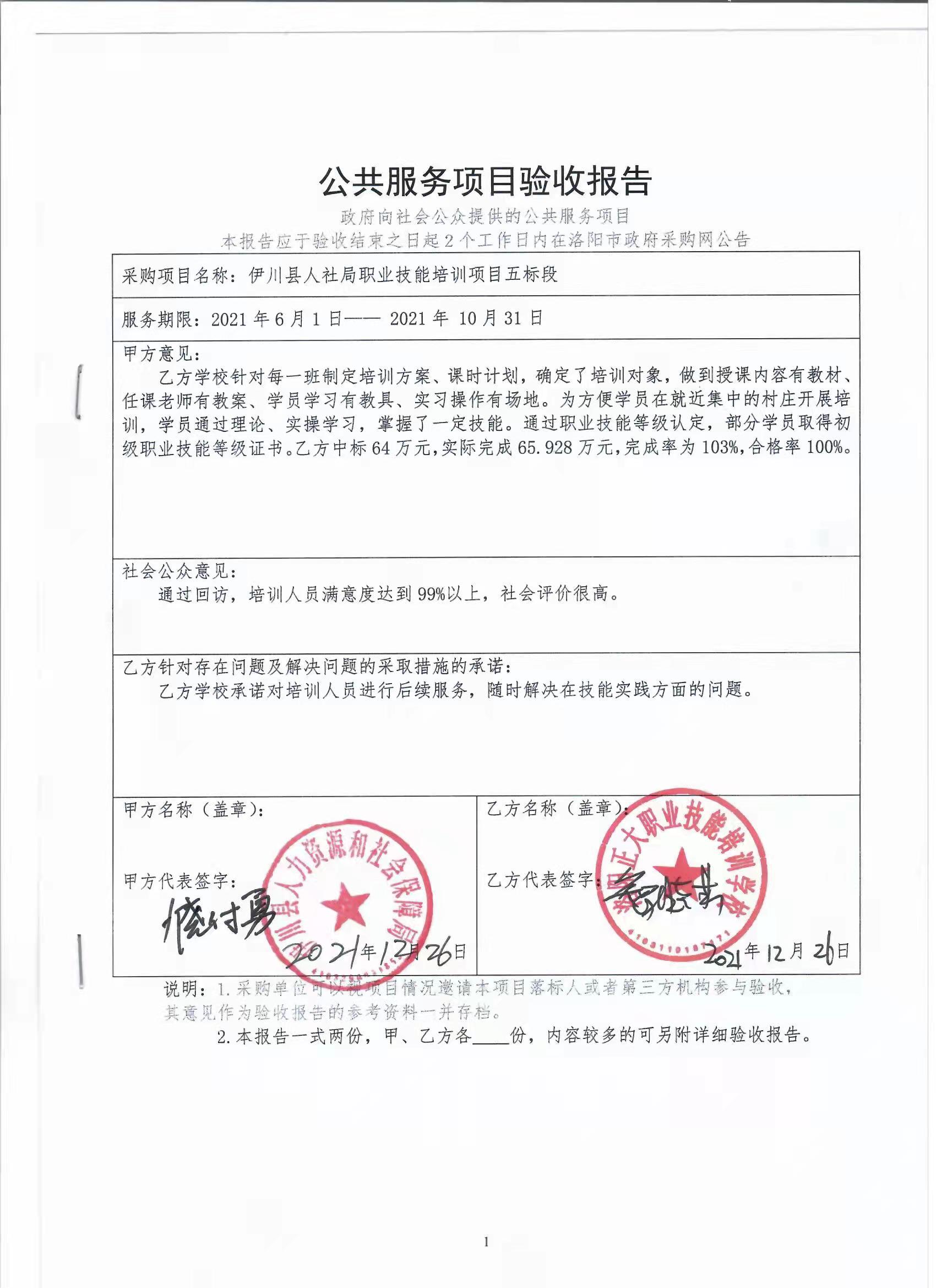 伊川县人社局职业技能培训项目五标段