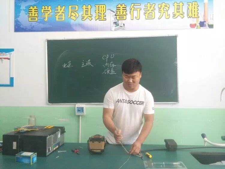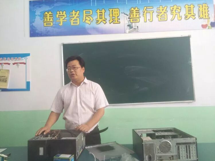 滨河高中教师韩帅森通过边拆装边讲解的方式,详细操作了电脑cpu、显卡、主板、内存、硬盘、电源等硬件的组装流程,还着重演示了网线的制作方法。