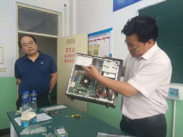 接着,邢国辉老师现场演示班班通的维修方法。