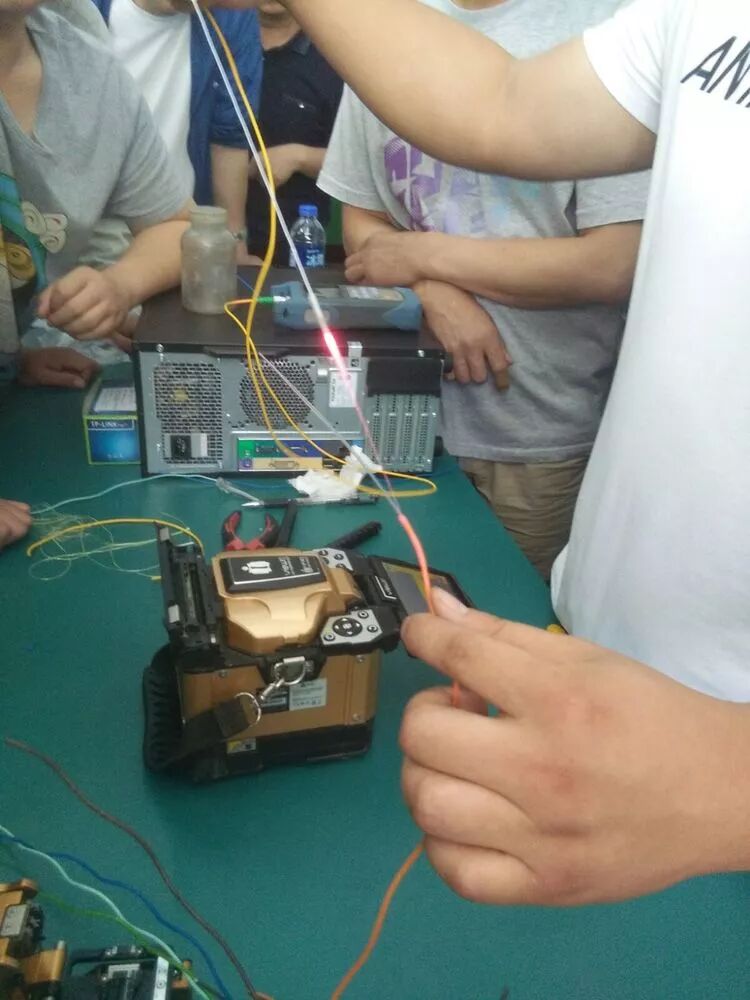 广电网络工程师讲授光纤热熔技术。
