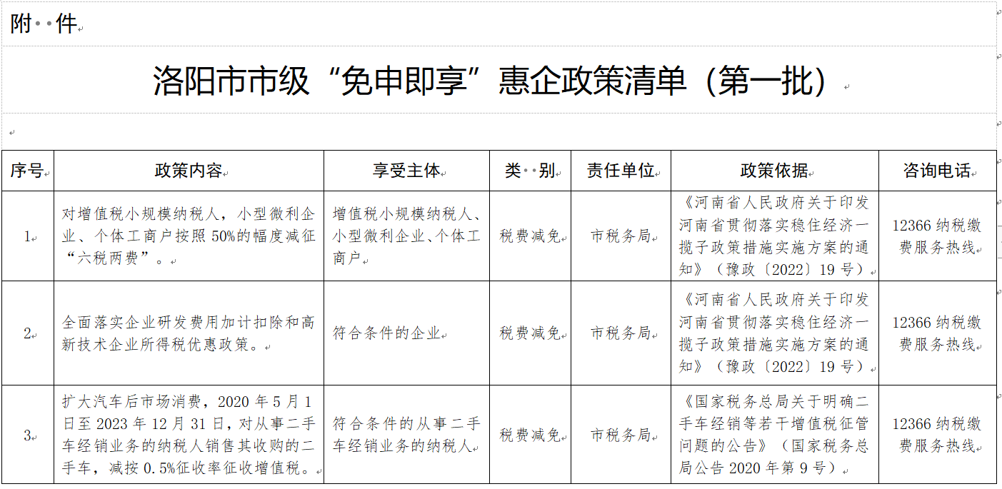 洛阳市人民政府办公室关于印发洛阳市惠企政策免申即享工作方案的通知